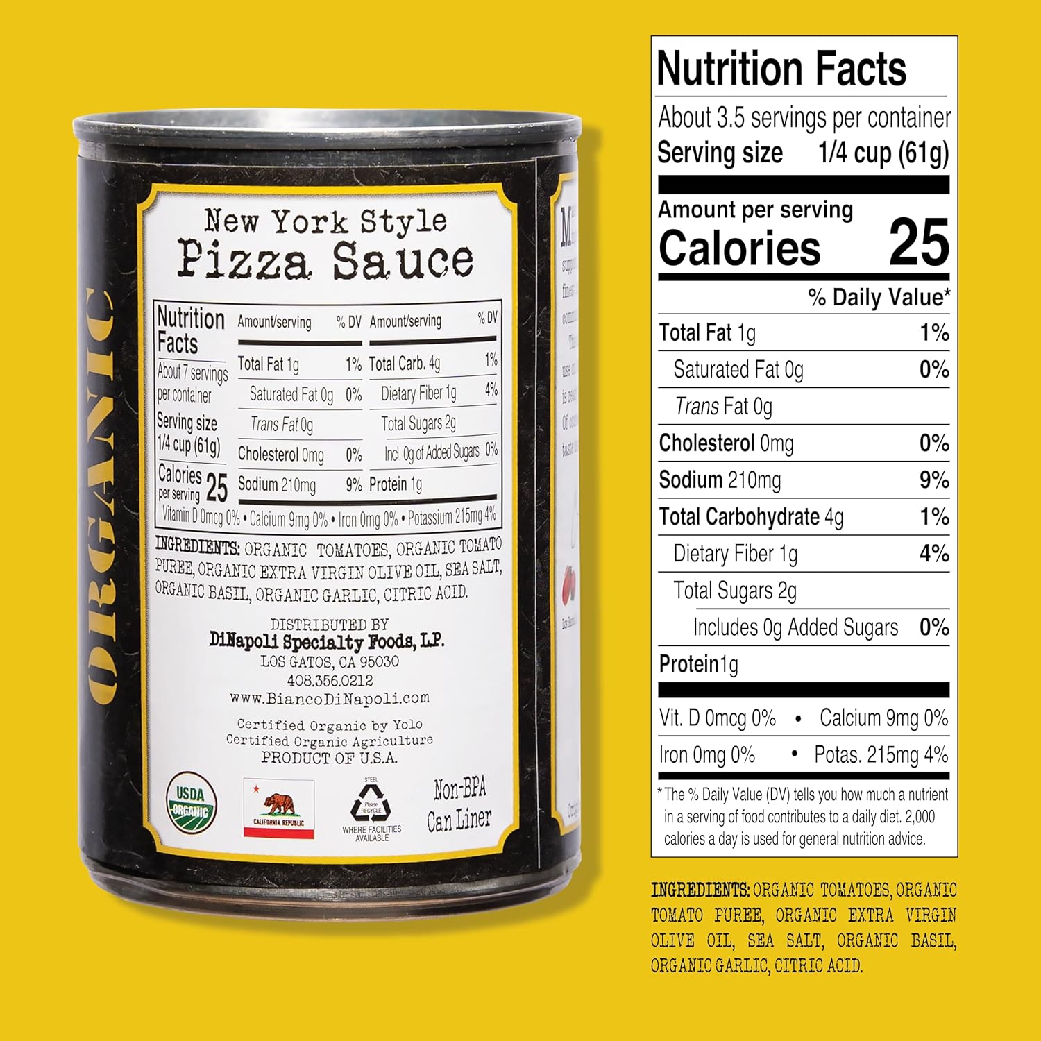 - CALIFORNIA GROWN TOMATOES – Bianco DiNapoli Organic NY Style Pizza Sauce is made from vine-ripened organic tomatoes grown in California, prized for their naturally sweet, fresh taste. Blended with organic tomato puree, this sauce delivers a rich and authentic tomato flavor that enhances every bite.